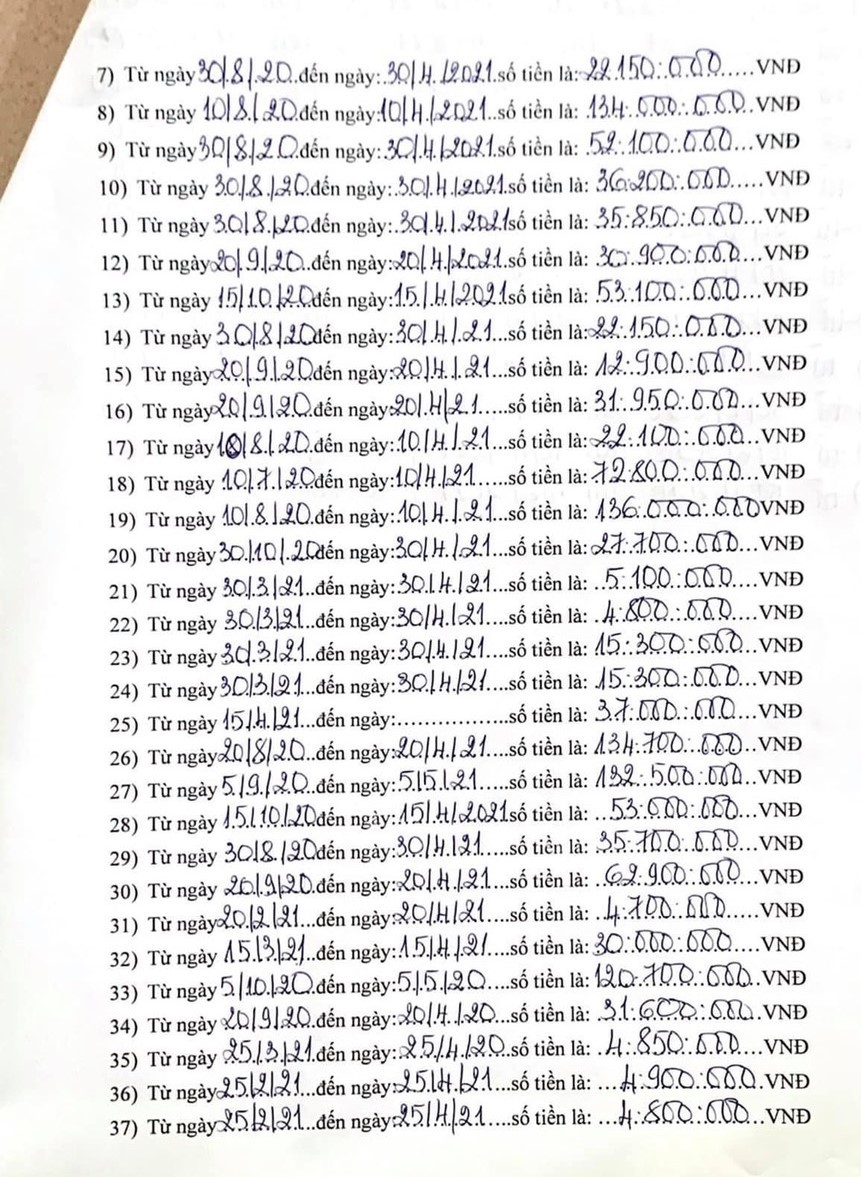 | Một bảng kê số tiền ông Ngọc đã đóng hụi |