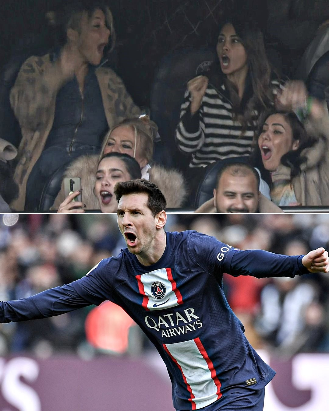 Chứng kiến người bạn đời "vẽ" tuyệt phẩm vào lưới Lille, cô vợ Antonela Roccuzzo đã ăn mừng đầy cuồng nhiệt trên khán đài.