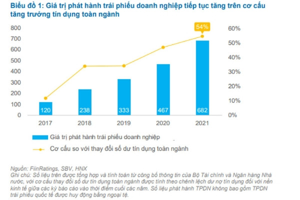 Đối với Việt Nam, từ năm 2018 đến 2021, thị trường trái phiếu DN đã bùng nổ với tổng giá trị trái phiếu DN đang lưu hành ước đạt gần 1,2 triệu tỷ đồng, chiếm khoảng 11,4% tổng dư nợ tín dụng toàn nền kinh tế và chiếm khoảng 14,5% GDP năm 2021.