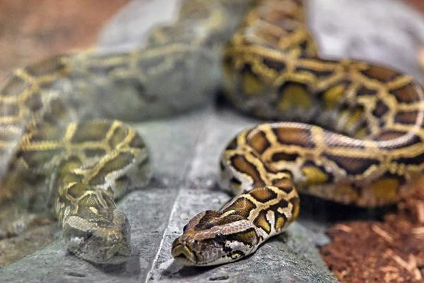Những con rắn trưởng thành đang trong quá trình lột da, “với đôi mắt mờ đục và làn da sần sùi”. Khả năng chúng đã ăn quá nhiều gồm rắn mới nở, ếch và thằn lằn. Công ty đã đưa những con rắn này đến nơi khác một cách an toàn.