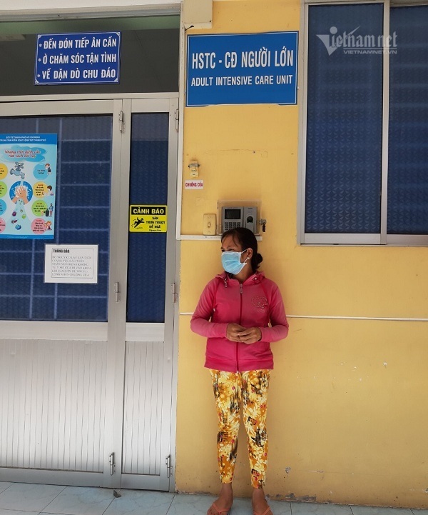 Ở bên ngoài khu Cấp cứu người lớn, Bệnh viện Bệnh Nhiệt đới TP.HCM, chúng tôi bắt gặp người phụ nữ có vóc dáng nhỏ bé ngồi tựa ngoài hiên, gần lối đi cửa chính. Khuôn mặt ngơ ngác, lo lắng, thỉnh thoảng lại hướng mắt vào bên trong. Chúng tôi hỏi thăm, người phụ nữ nước mắt lưng tròng, nghẹn ngào tâm sự.