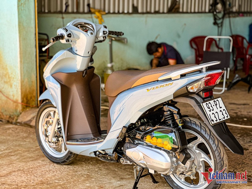 Anh Nguyễn Tuấn Duy ở xã Nghĩa Trung, huyện Bù Đăng, Bình Phước, thợ dọn hoàn thiện chiếc xe này cho biết, trước khi được dọn mới, chiếc xe Honda Vision 2015 của khách đã sử dụng 7 năm nên đã khá cũ nát. Tuy nhiên, với kinh nghiệm trong nghề nhiều năm, anh Duy đã tư vấn cho khách, đáp ứng được yêu cầu dọn về nguyên bản chiếc xe và lên một số "đồ chơi" để ngoại hình xe được “lột xác” mới hoàn toàn.