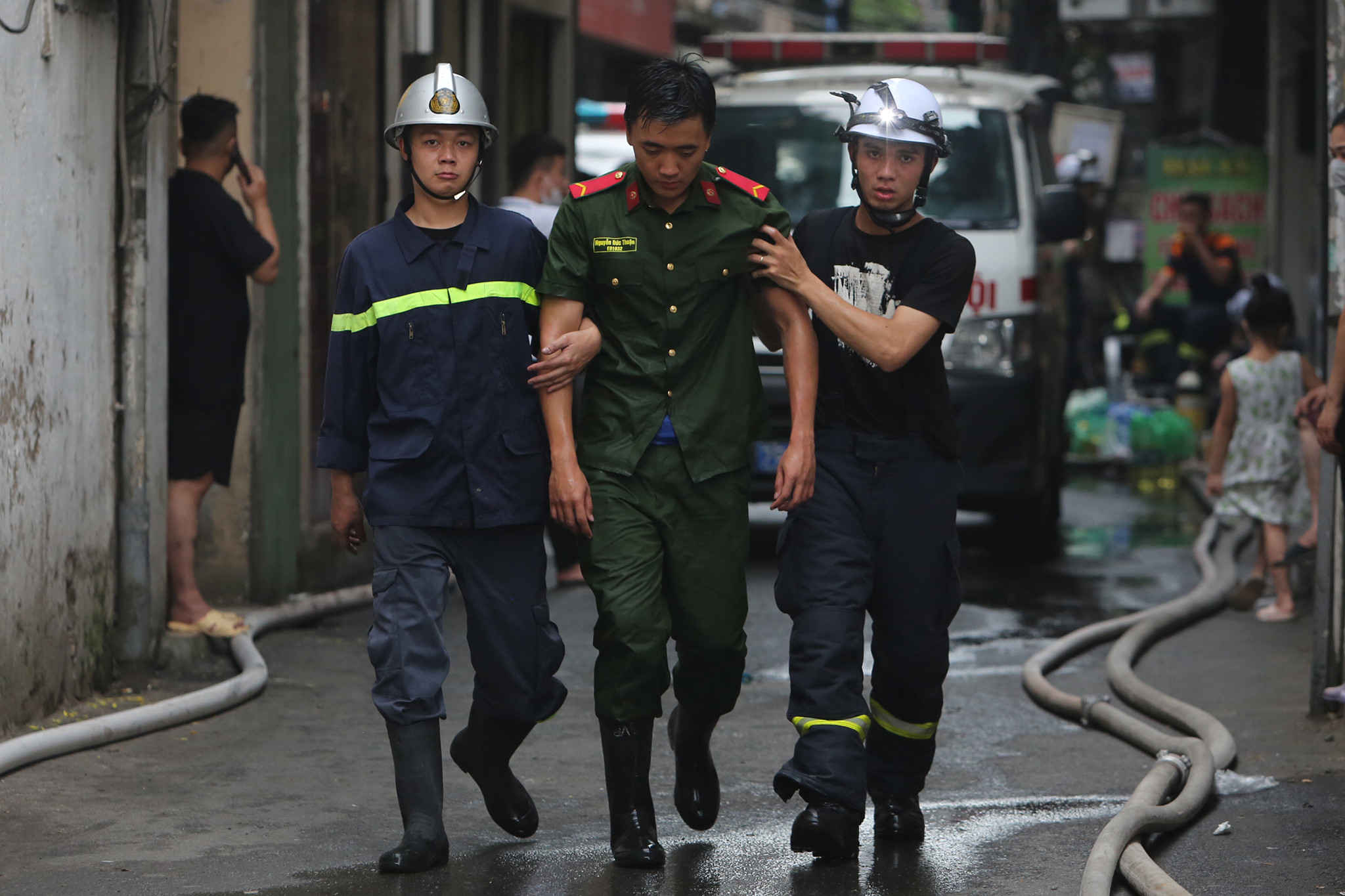 Hạ sĩ Nguyễn Đức Anh, chiến sĩ Cảnh sát PCCC&CNCH thuộc Đội Chữa cháy và Cứu nạn cứu hộ khu vực 2 (Phòng Cảnh sát PCCC&CNCH, Công an TP Hà Nội) cho biết, thời điểm xảy ra cháy khói đen dày đặc bên trong căn nhà, lính cứu hỏa chỉ tiếp cận được 15 phút là phải ra ngoài để đổi người khác vào.