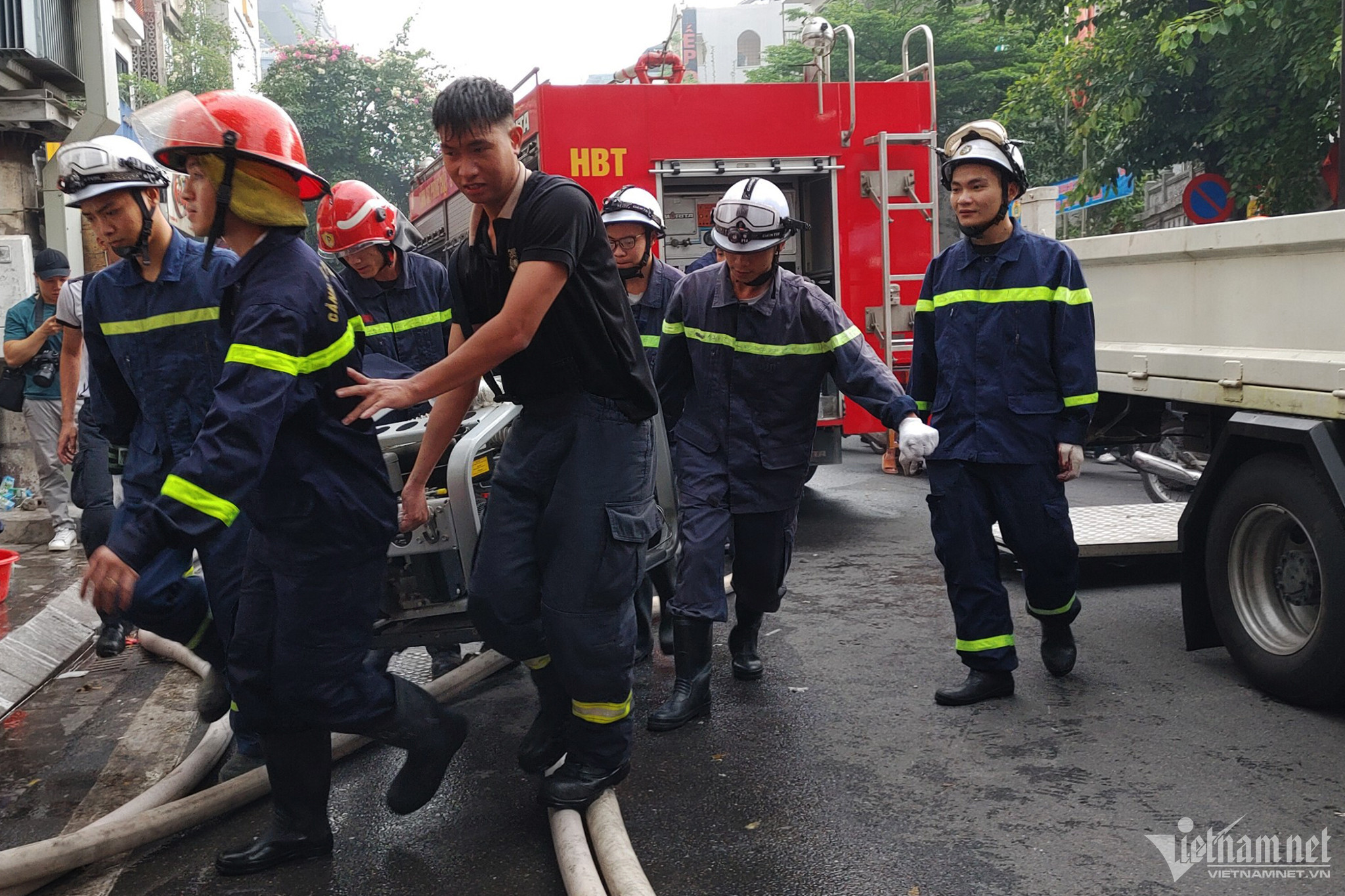 5 phút sau, 2 xe chữa cháy, cứu nạn cứu hộ của Đội Cảnh sát PCCC&CNCH Công an quận Đống Đa đã đến hiện trường và triển khai các mũi dập lửa, tìm kiếm người mắc kẹt.