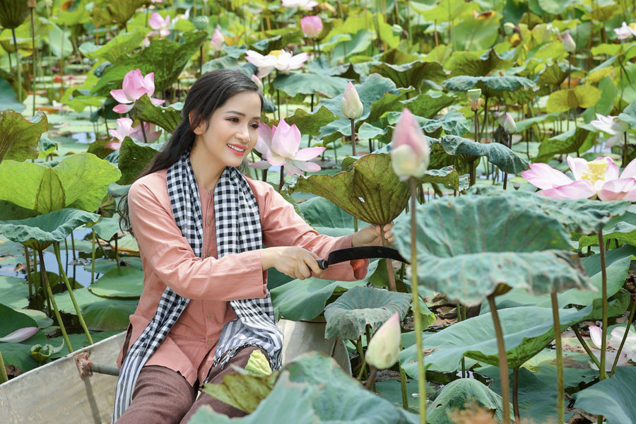 Hình ảnh “cô hàng hoa Vũ Diệu Thảo” với chiếc áo bà ba, quần lụa, nón lá cùng chiếc xe chở đầy hoa sen khiến nhiều người thích thú, trầm trồ. Hình ảnh nữ tính, đằm thắm nhưng vẫn pha chút tinh nghịch, lí lắc mang đến cho người xem cảm giác tươi vui, thú vị.