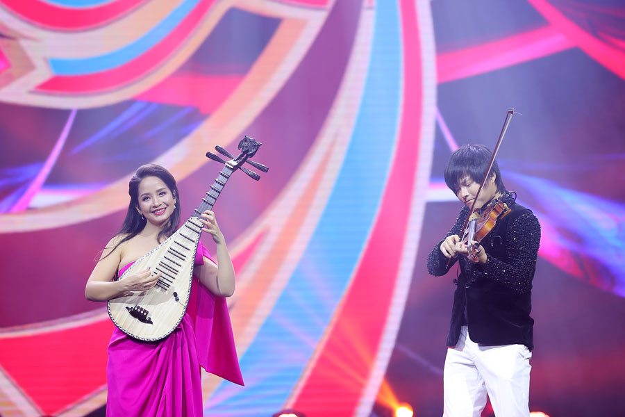 Đặc biệt, sự kết hợp giữa hai nhạc cụ dân tộc và nhạc cụ phương Tây, giữa Tỳ bà và Violin cũng lần đầu xuất hiện trên sân khấu “Dáng em” qua màn pha trộn ngoạn mục thanh âm trong cùng một tác phẩm mashup “Còn duyên - Người ở đừng về” cực kỳ ấn tượng, khiến khán giả hào hứng vỗ tay không ngớt. Âm nhạc đi từ dịu dàng sâu lắng, đến cao trào dồn dập và cuối cùng đẩy cảm xúc người nghe trở nên bừng sáng, kết thúc ở kỹ thuật điêu luyện của Diệu Thảo và Anh Tú.