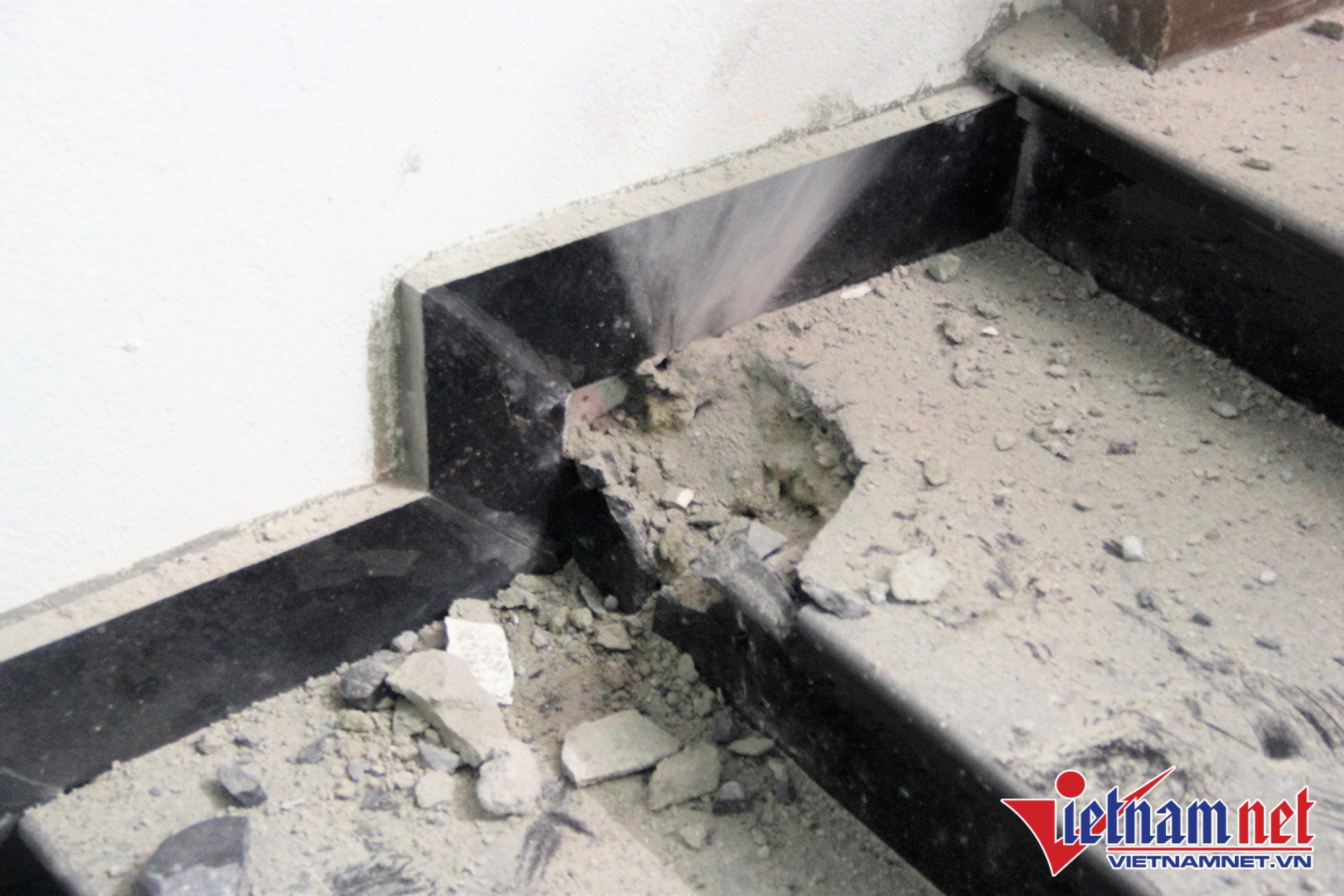 Điều đáng nói, mặc dù nằm ở phía đối diện với gara nhưng nhà anh Lê Tiến Thái (SN 1975, trú xóm 9, xã Quỳnh Tân) cũng bị nhiều mảnh vỡ làm rách tôn cửa, đâm xuyên một lỗ bờ tường đứt dây điện, hỏng cả cửa kính, bậc thềm nhà…