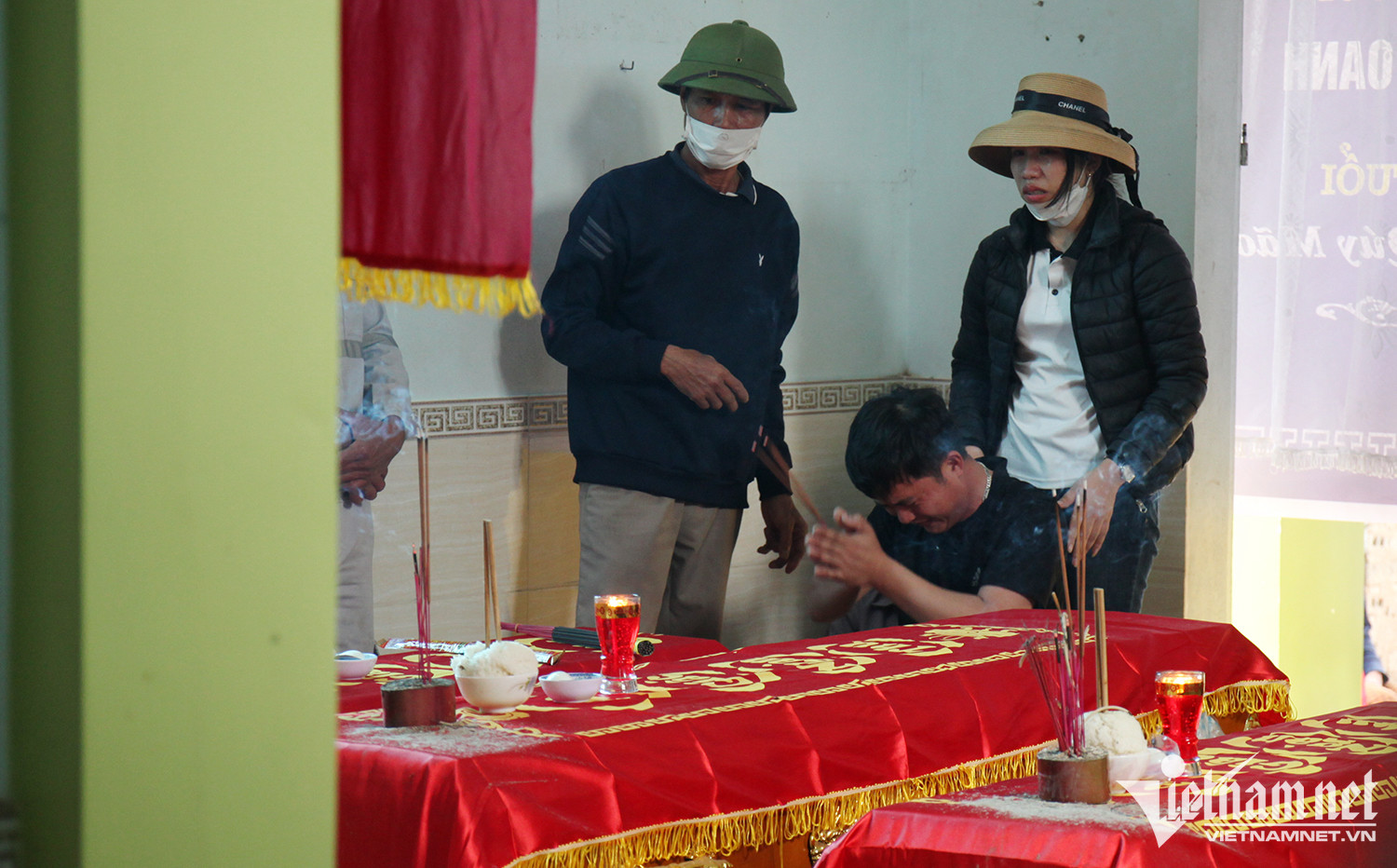 Tới nhà, anh đã không thể đứng vững khi chứng kiến cảnh tượng quặn lòng. Bộ bàn ghế tại phòng khách đã được chuyển đi chỗ khác, nhường chỗ đặt thi thể vợ và 2 con. Trước di ảnh của vợ và con, anh dường như vẫn không thể tin trong phút chốc đã mất đi 3 người thân...
