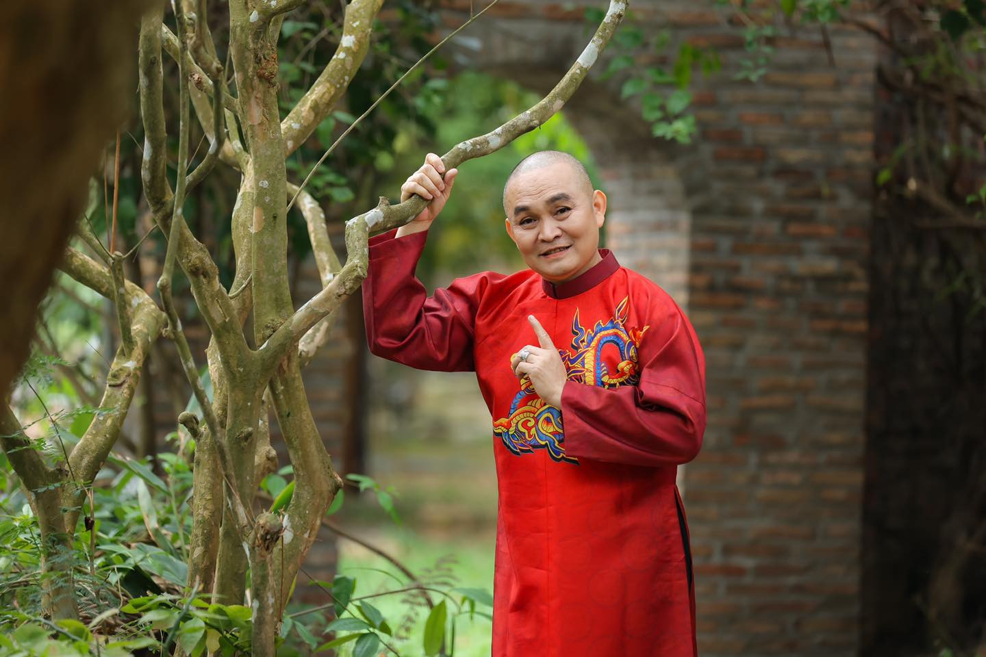 NSƯT Xuân Hinh diện nhiều bộ áo dài với các kiểu dáng đứng bên tường, trước cửa nhà,... Nhiều người hâm mộ khen ông rất thần thái, an nhiên khi mặc áo dài truyền thống.