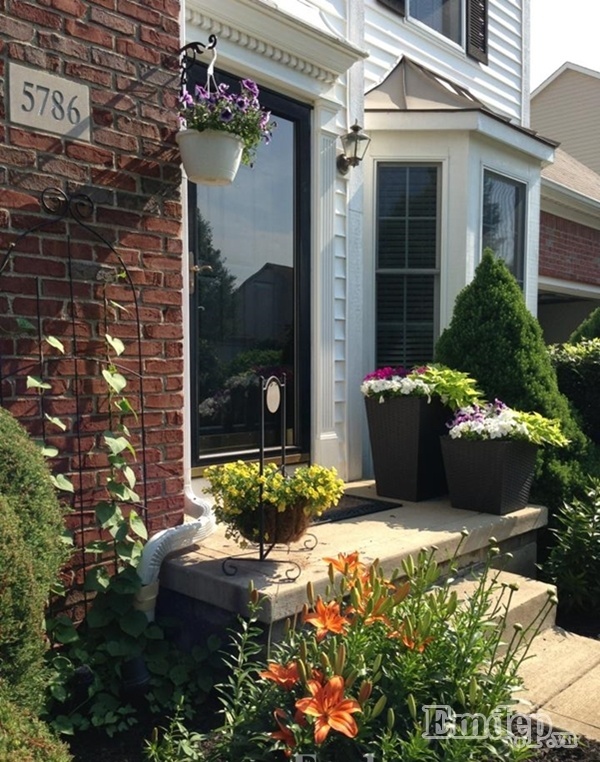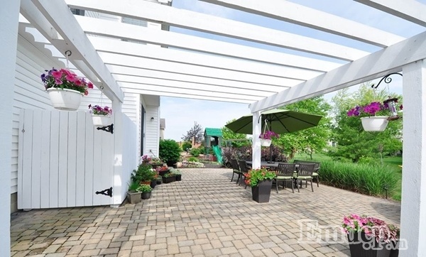 Ở giàn gỗ trước nhà, chị sơn hoàn toàn bằng màu trắng khiến cho những chậu hoa đặt dọc lối đi hay giỏ treo trên tường trở nên đáng yêu và bắt mắt hơn |