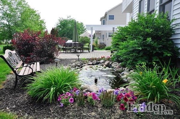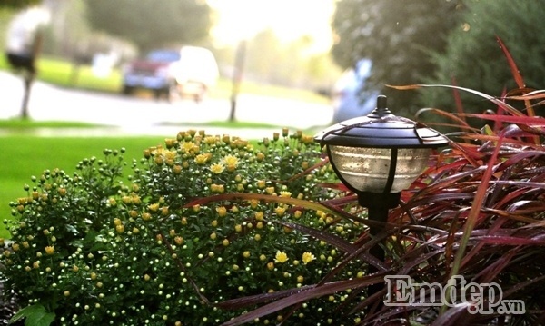 Khoảng ngoại thất xinh xắn với những khóm hoa đủ chủng loại và màu sắc đua nhau nở |
