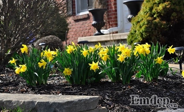 Hoa thủy tiên vàng ruộm được trồng ở trước nhà, khi trời nắng ấm cũng là lúc thủy tiên nở rực rỡ... |