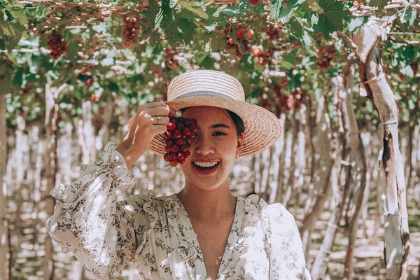 Kim Hà (TP Cần Thơ) chia sẻ: “Thấy mọi người chia sẻ hình ảnh vườn nho này trên Facebook nên cuối tuần em rủ bạn bè đến tham quan.