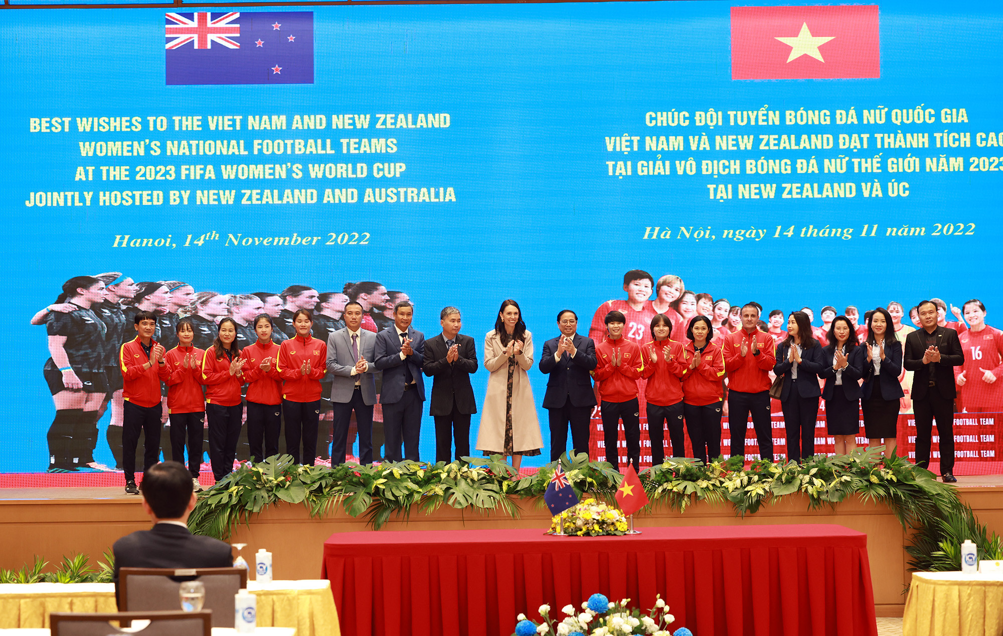 Trước đó, trong buổi chiều, Thủ tướng Phạm Minh Chính đã chủ trì lễ đón chính thức Thủ tướng New Zealand Jacinda Ardern. Sau hội đàm, hai Thủ tướng đã chứng kiến lễ ký kết văn kiện hợp tác giữa các bộ, ngành hai nước và gặp gỡ báo chí thông báo kết quả hội đàm.