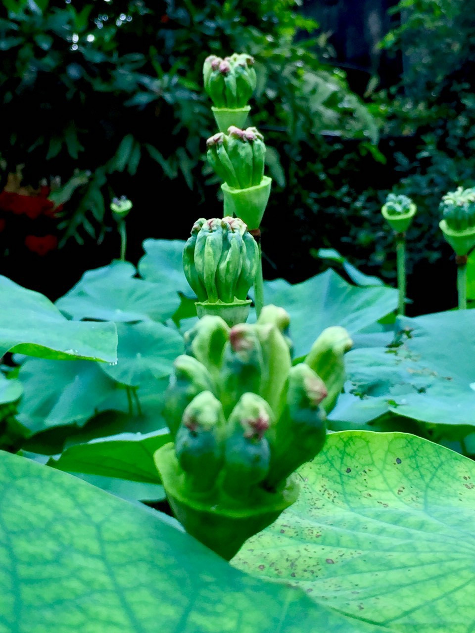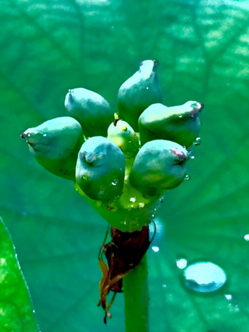 Ngoài vẻ đẹp và hương thơm, sen cung đình còn khiến ông Điệp say đắm bởi những đài sen nhả ra hạt ngọc xanh biếc. Mỗi hạt màu xanh ngọc phía trên đài sen lại có hình dáng khác nhau, không hạt nào giống hạt nào.
