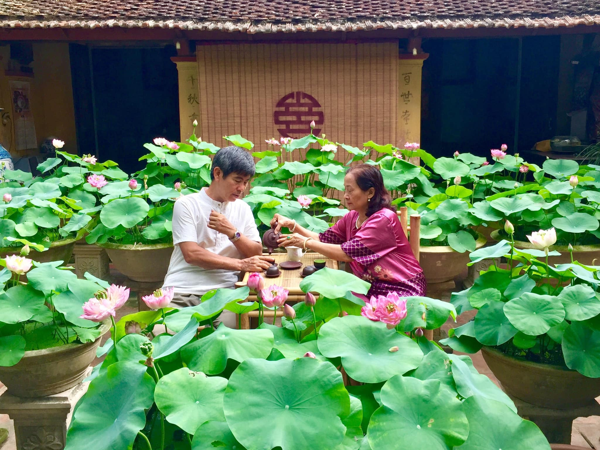 Còn gì tuyệt vời hơn khi mỗi sớm mai thức dậy, cùng người bạn đời ngồi thư thái bên ấm trà sen, cùng nhau chăm lo nhà cửa và hưởng thú vui tao nhã này.