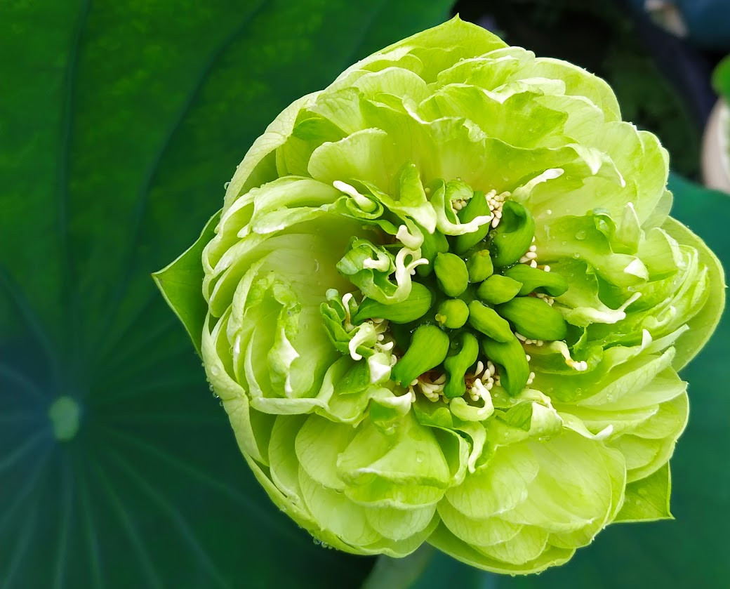 Loại sen khó chinh phục nhất là Gold and Jade Peony (hay gọi R4) rất khó cho hoa. Vậy mà, năm nay hoa nở rất đẹp khiến chị Vân thích thú.