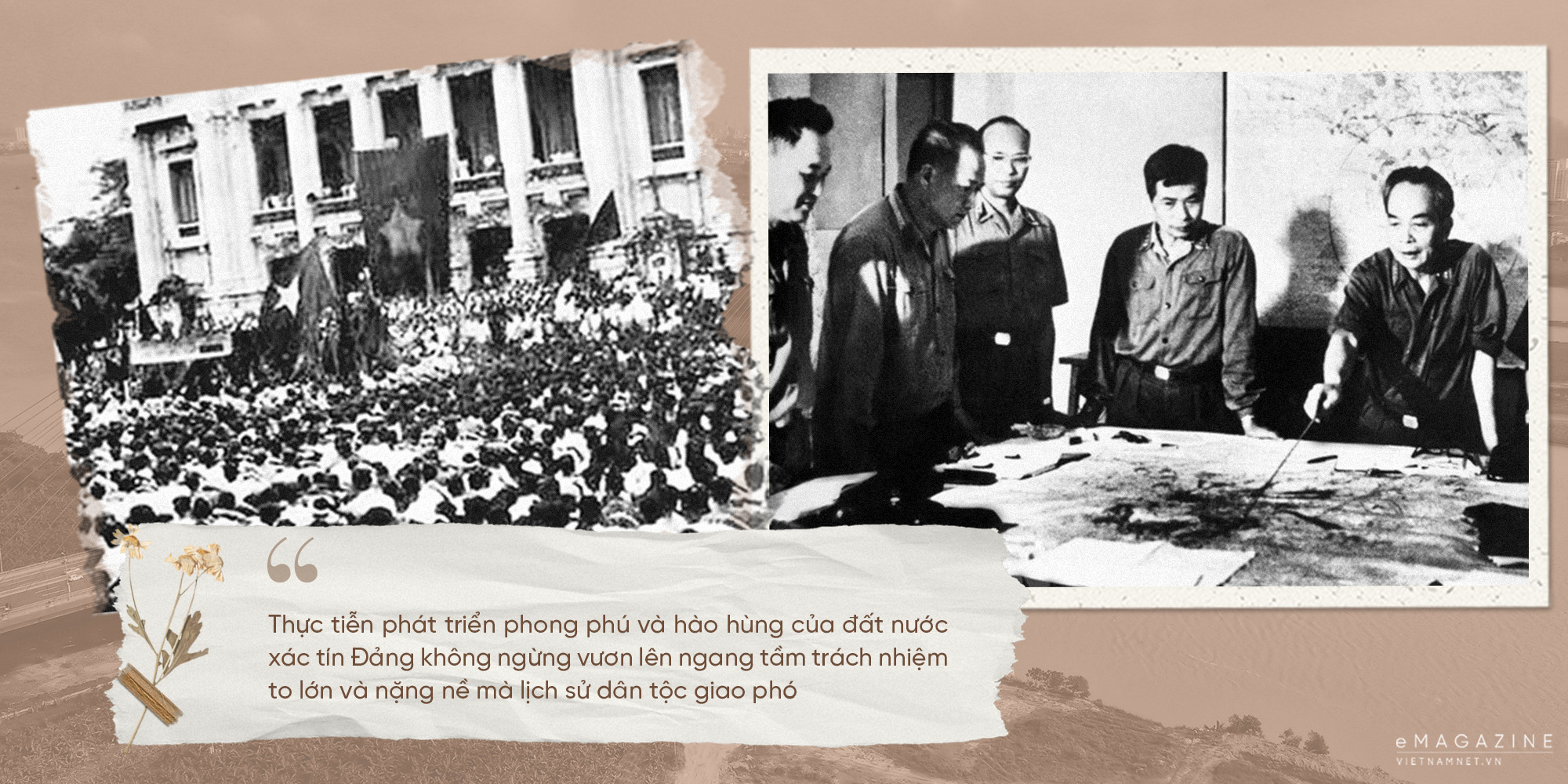 Thực tiễn phát triển phong phú và hào hùng đó của Đất nước xác tín Đảng không ngừng vươn lên ngang tầm trách nhiệm to lớn và nặng nề mà lịch sử dân tộc giao phó, vì độc lập dân tộc và chủ nghĩa xã hội, vì hạnh phúc của Nhân dân, vì sự trường tồn của Dân tộc.