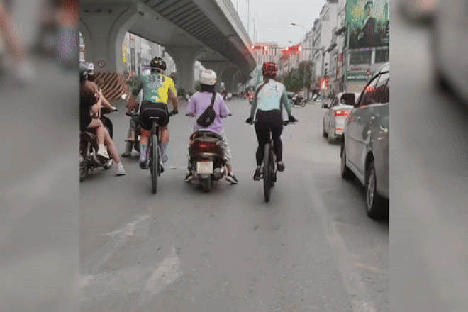 Mới đây, trên mạng xã hội chia sẻ đoạn clip ghi lại cảnh hai người đạp xe để tập thể dục ngang nhiên vượt đèn đỏ ở Hà Nội.