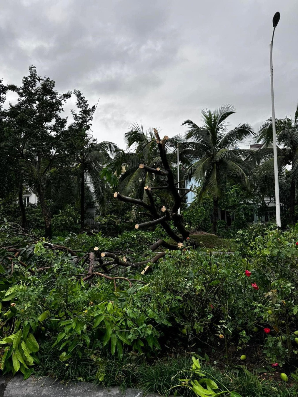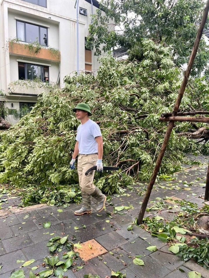 Trên trang cá nhân, ca sĩ Nguyễn Trần Trung Quân đăng ảnh quang cảnh tại nhà riêng ở Hà Nội. Anh cho biết hình ảnh trên được chị dâu liên tục cập nhật. "Sau trận bão lịch sử, cả khu nhà, cây cối tan hoang, cảnh tượng thật đáng sợ. Sáng nay đã khắc phục được một phần", nam ca sĩ bày tỏ.