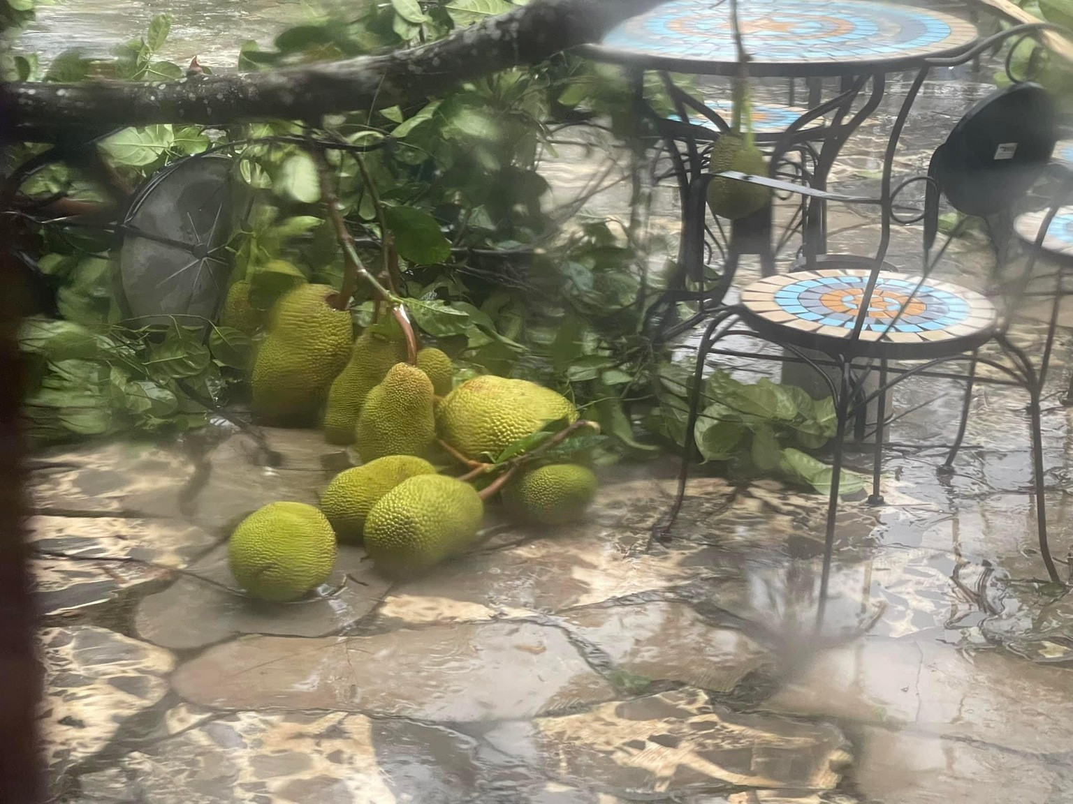 NSƯT Việt Hoàn chia sẻ khung cảnh vườn nhà sau khi bị siêu bão Yagi tàn phá. Cây mít trĩu quả đổ rạp, mái tôn đổ sập, cánh cửa sắt bị gió thổi bay… Anh viết trên trang cá nhân: "Xin cảm ơn mọi lời thăm hỏi. Gia đình và nhà cửa của tôi vẫn yên ổn, chỉ có cây trái và cảnh quan nát tan. Hẹn 1 tháng, khung cảnh sẽ đẹp đẽ trở lại tiếp đón mọi người".