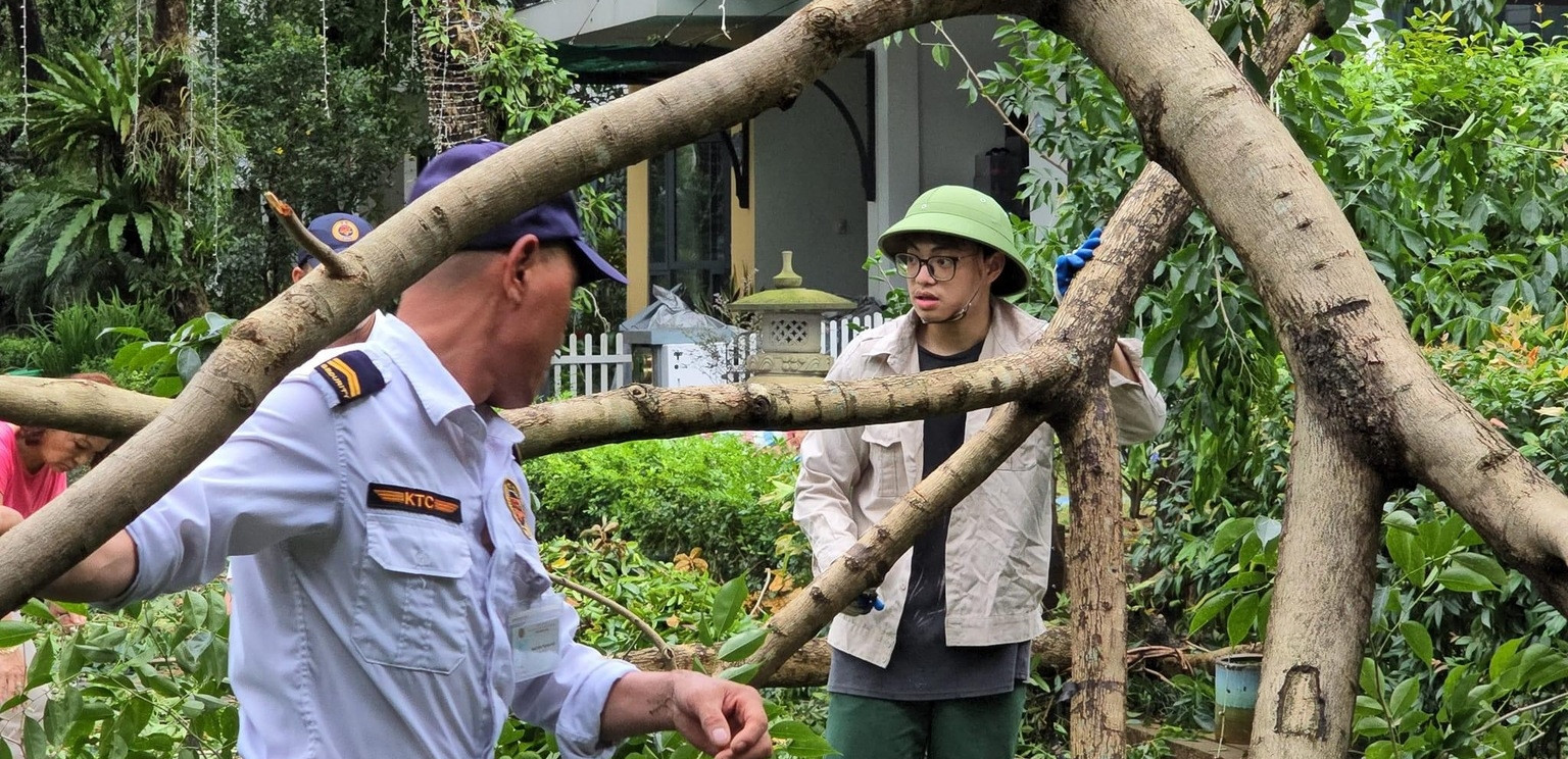 Chia sẻ với VietNamNet, NSƯT Chiều Xuân cho biết nhà vườn rộng 1.000m2 ở ngoại thành Hà Nội của vợ chồng chị cũng bị nhiều cây đổ sau trận bão Yagi, trong đó có cây xà cừ 100 tuổi.