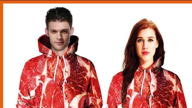 Ăn theo cơn sốt thịt lợn, nhiều cửa hàng online thi nhau rao bán áo in hình thịt lợn 3D.