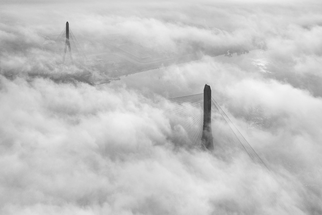 Nhiều tay máy Việt Nam muốn minh oan cho Dr.Akira Takaue, kiến trúc sư người Nhật Bản có bức ảnh chụp cầu Cần Thơ chìm trong mây gây tranh cãi bị NatGeo xoá bỏ hồi tháng 8/2017.