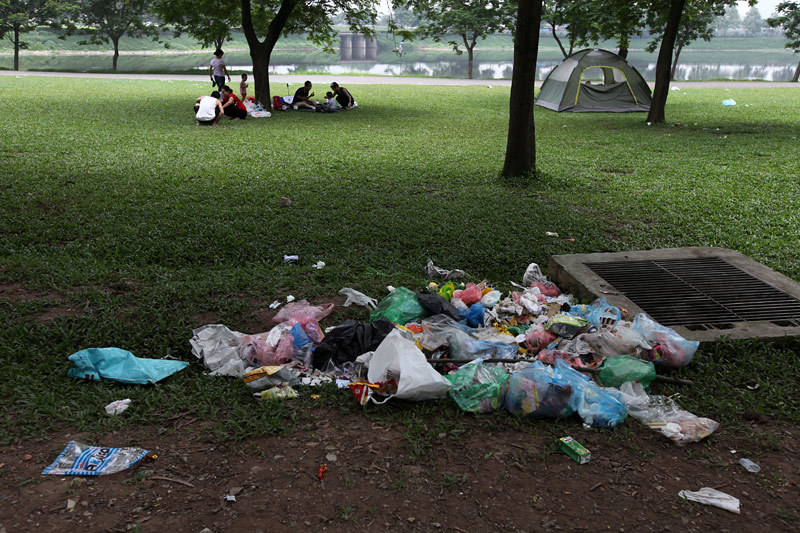 Vài năm nay, Công viên Yên Sở (Hoàng Mai - Hà Nội) trở thành điểm đến vui chơi của người dân Thủ đô vào dịp cuối tuần, kỳ nghỉ lễ. Không ít người sau khi cắm trại, vui chơi đồng thời cũng xả rác bừa bãi khắp công viên.