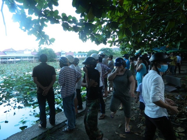 Nhiều người đi đường bị một phen khiếp vía khi phát hiện xác chết nằm dưới hồ sen bên đường và bốc mùi hôi thối nặng.