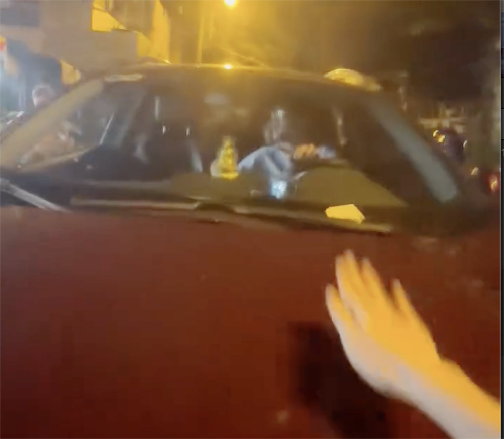 Tuy nhiên, tài xế ngồi trong ô tô lớn tiếng và điều khiển xe lao về phía trước. Cô gái đứng trước đầu xe bị hất trên nắp ca-pô và kêu cứu.