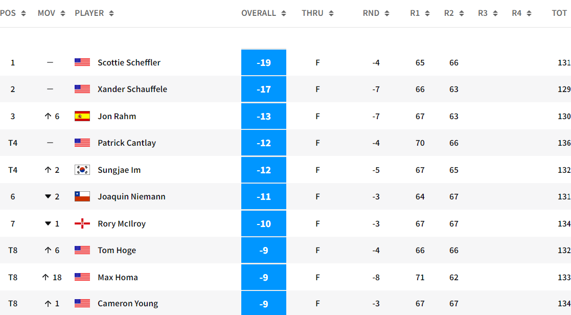 Ngoài việc tạo khoảng cách khá lớn với các đối thủ phía sau, Schauffele đang tiến gần đến ngôi đầu bảng của Scottie Scheffler, khi khoảng cách hiện là 2 gậy.