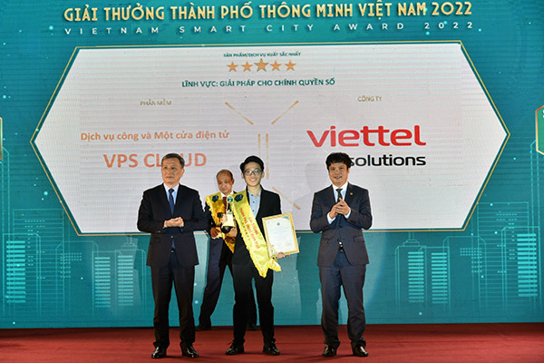 Trong khuôn khổ của Hội nghị, tại Lễ trao trao Giải thưởng Thành phố thông minh Việt Nam 2022, Phần mềm Dịch vụ công và Một cửa điện tử - VPS Cloud của Viettel Solutions đã được vinh danh hạng 5 sao dành cho các giải pháp xuất sắc nhất với hạng mục Các sản phẩm, giải pháp cho Chính phủ số.