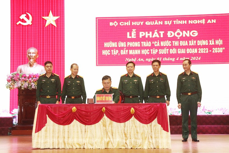 Tại Nghệ An, Bộ Chỉ huy Quân sự tỉnh tổ chức Lễ phát động hưởng ứng phong trào “Cả nước thi đua xây dựng xã hội học tập, đẩy mạnh học tập suốt đời giai đoạn 2023 - 2030”.