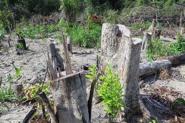 Một khu vực đắc địa ngay cạnh đường 10 làn (TP Hạ Long, Quảng Ninh) có thể nhìn thẳng ra vịnh Hạ Long mới đây vừa bị chặt hết cây rừng. Địa hình khu vực này được hạ cốt nền rồi quây hàng rào, làm bờ kè chống sụt đất. Nơi những cây rừng bị đốn hạ được trồng cỏ thảm, làm đường đi xung quanh và trồng những cây keo nhỏ.