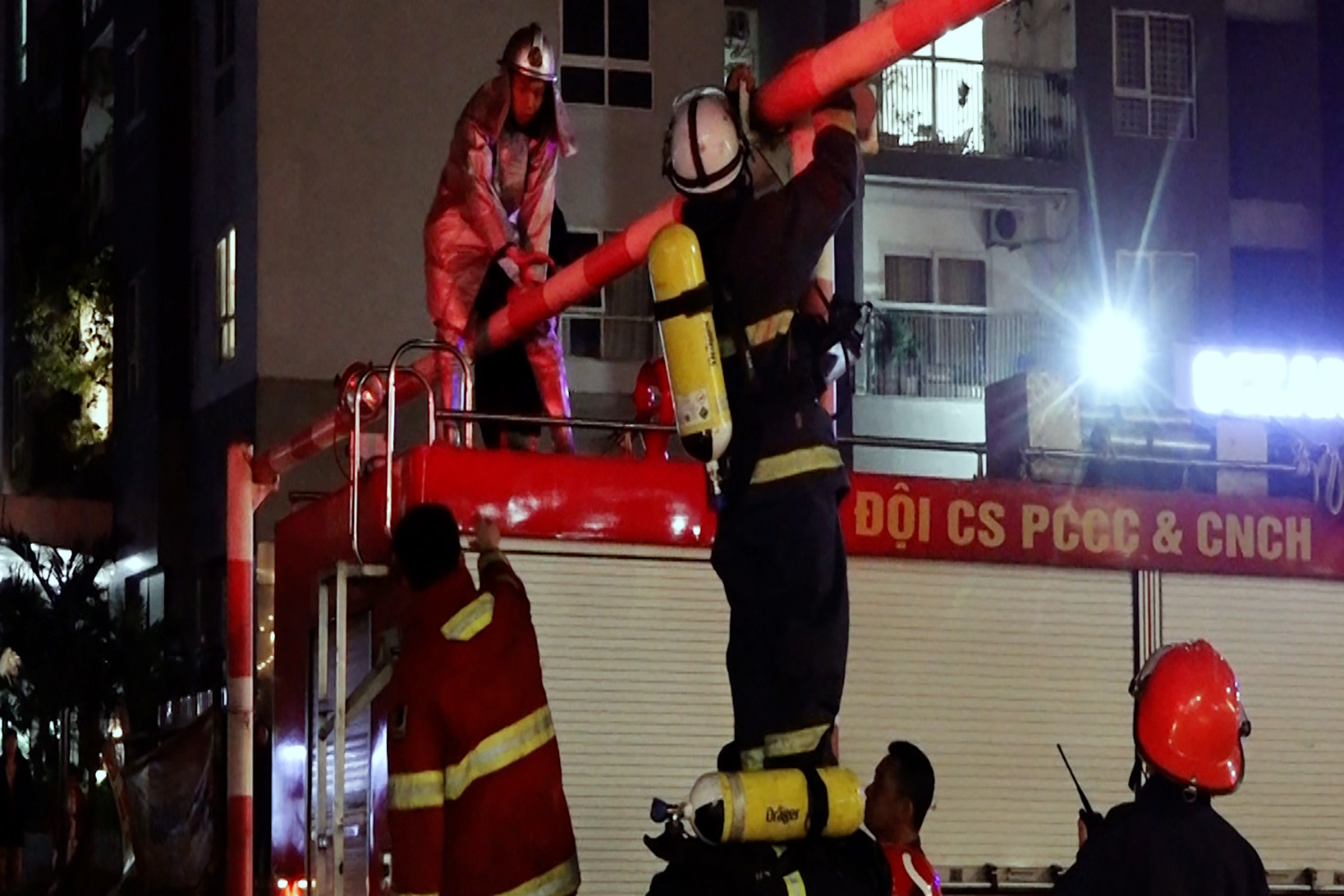 Nhận tin báo, 3 xe chữa cháy của Đội Cảnh sát PCCC&CNCH Công an quận Hoàng Mai và Thanh Xuân đã đến hiện trường để triển khai dập lửa và cứu nạn cứu hộ.