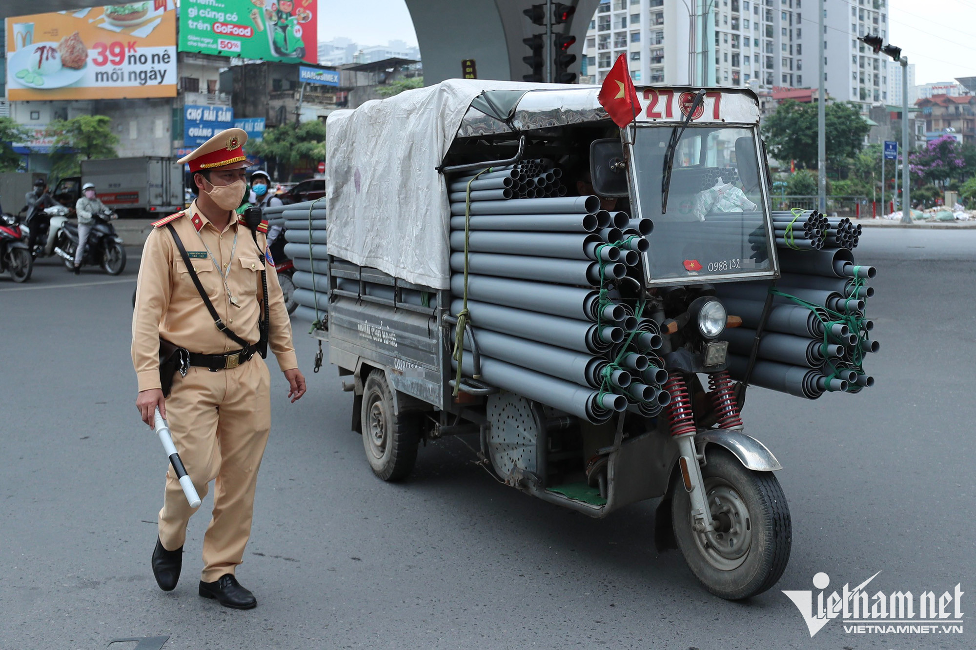 Thiếu tá Vương Đình Huỳnh (cán bộ, Đội CSGT số 4, Phòng CSGT Hà Nội) cho biết, ngay sau khi có chỉ đạo của UBND TP Hà Nội, Công an TP Hà Nội, Đội CSGT số 4 đã bố trí lực lượng xử lý nghiêm các hành vi điều khiển xe 3 bánh, xe tự chế chở hàng cồng kềnh. Tuy nhiên, khi thấy lực lượng chức năng, nhiều tài xế lập tức vòng tránh sang các tuyến đường khác. Trong thời gian tới, Đội sẽ bố trí lực lượng vừa đứng chốt, vừa tuần lưu trên đường để xử lý triệt để tình trạng trên.