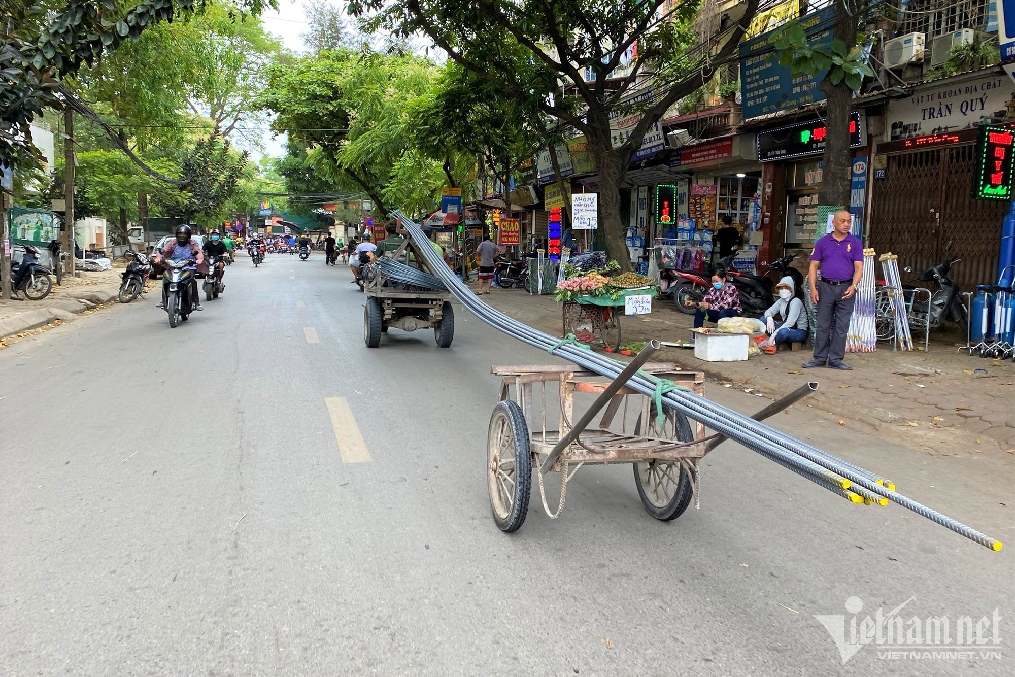 Điển hình sáng 8/5, xe công nông chở theo bó sắt dài gần chục mét đi ngược chiều từ đường Vũ Trọng Phụng (Thanh Xuân Trung, Thanh Xuân) ra đường Nguyễn Trãi đã va chạm với xe buýt.