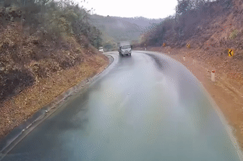 Theo đoạn video, một chiếc xe bán tải hiệu Toyota Hilux màu đỏ phóng nhanh trên mặt đường trơn trượt, sau đó bị mất lái và tông thẳng vào một xe máy chở theo 2 người ở phần đường đối diện.