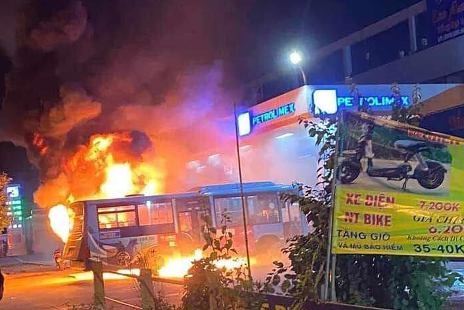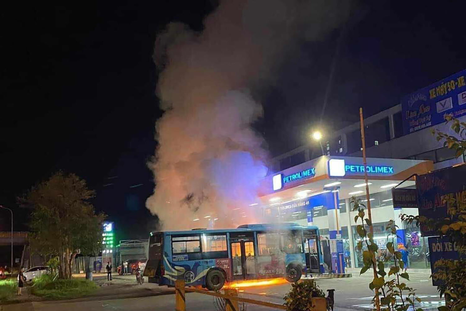Tại hiện trường, xe buýt đỗ sát trụ bơm xăng, bốc cháy dữ dội kèm nhiều tiếng nổ. Khói đen từ vụ cháy bốc cao hàng chục mét. Lực lượng Cảnh sát PCCC đã nhanh chóng triển khai đội hình dập lửa, chống cháy lan sang khu vực lân cận.