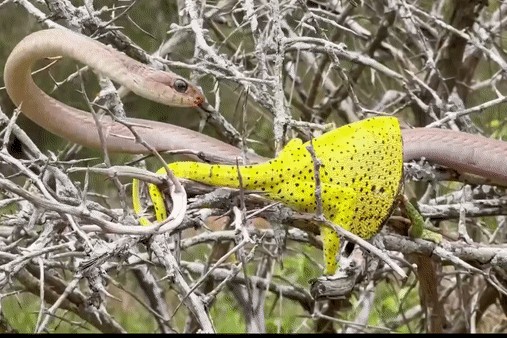 NAM PHI - Đoạn video ghi lại cảnh một con rắn Boomslang tấn công một con tắc kè hoa trên cây được một nhiếp ảnh gia ghi lại được tại Công viên Quốc gia Kruger, Nam Phi.