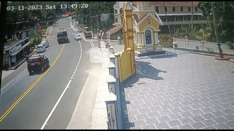 Khoảnh khắc một chiếc xe buýt bất ngờ lấn sang làn đường đối diện, đâm thẳng vào xe ô tô con chạy ngược hướng.