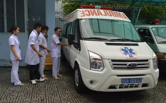 Thí sinh được xe cấp cứu bệnh viện hộ tống đến trường thi. Ảnh: Minh họa