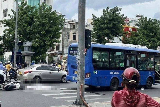 Vụ tai nạn xảy ra vào khoảng 10h30 trưa nay (26/6) trên xa lộ Hà Nội, đoạn gần ngã 3 Khu công nghệ cao TPHCM, phường Hiệp Phú, TP Thủ Đức.