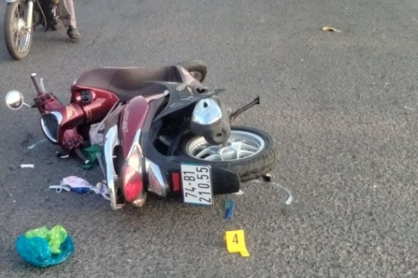 Khi nhìn ra đường, họ chứng kiến xe máy cùng người đàn ông bị xe container BKS tỉnh Bình Định kéo lê trên đường.