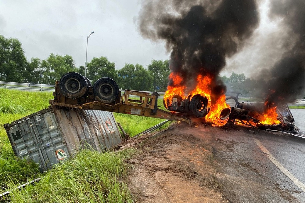 Sáng 12/8, xe container mang biển số 51C do anh Đ.V.C. (SN 1985, trú tại Tứ Kỳ, Hải Dương) điều khiển trên cao tốc Hà Nội - Hải Phòng. Trên xe lúc này chỉ có nam tài xế.