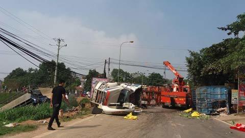 Container đâm trực diện xe buýt, hơn 10 người bị thương