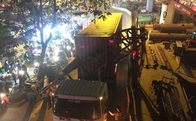 Hà Nội: Xe container húc đổ cổng hạn chế chiều cao
