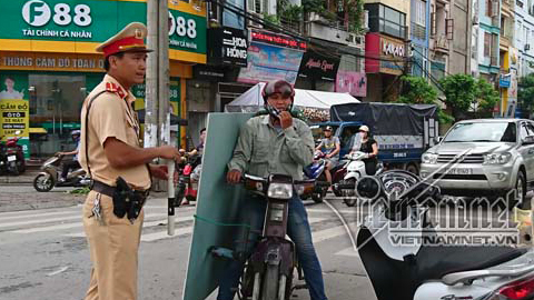Đội CSGT số 3, Phòng CSGT Hà Nội xử lý hàng loạt các phương tiện cũ nát chở vật liệu gây nguy hiểm cho người đi đường.