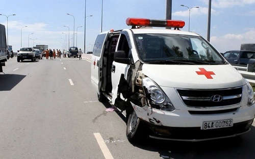 Bệnh nhân hoảng loạn trên xe cứu thương bị tông nát